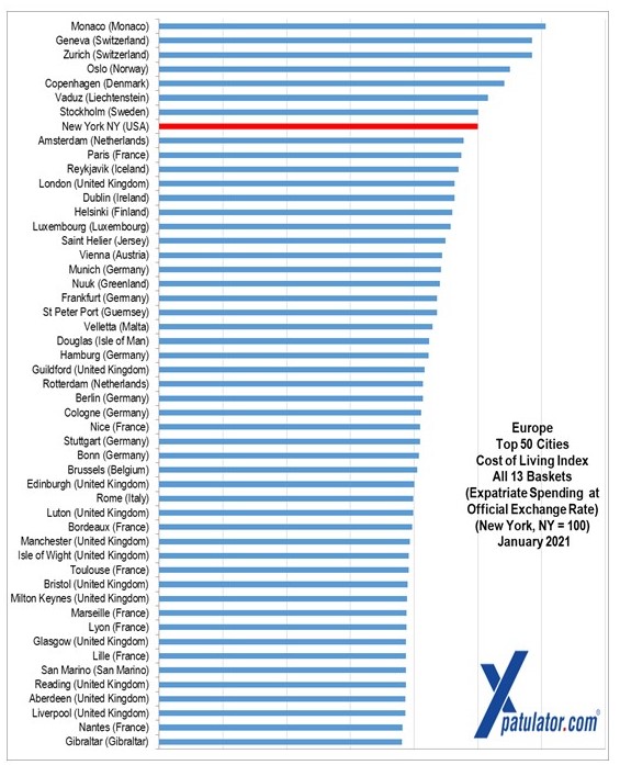 With a few exceptions, the most expensive cities in Europe are mostly the Non-Euro countries.