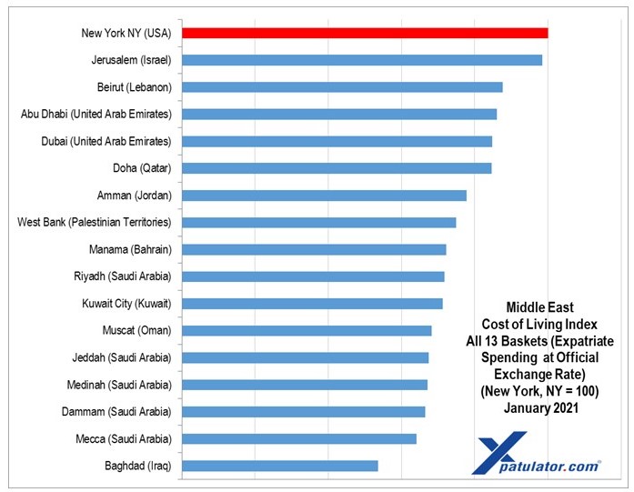 Overall Middle East countries have average local cost of living levels; however the cost of importing and transporting the international standard of goods that expatriates expect to purchase in the cities in this region can make it relatively expensive to maintain the lifestyle that they are used to.