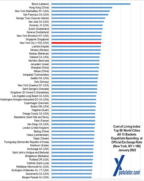 The January 2023 rankings are dominated by USA locations and is headed by Beirut / Lebanon for the first time.